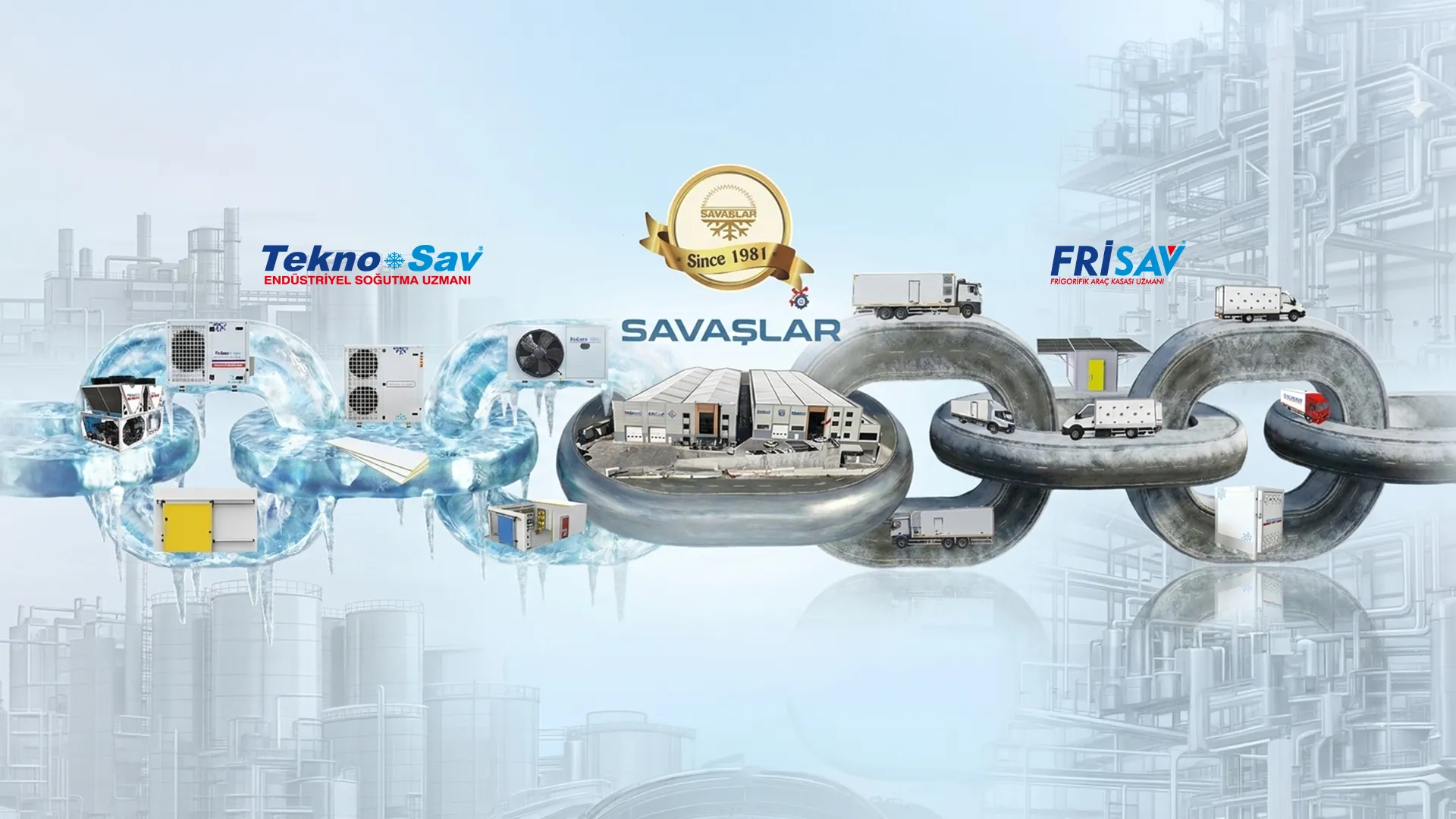 1981 yılında Endüstriyel Soğutma Sektörünün duayenlerinden Prof. Sabri Savaş'ın önderliğinde kurulan SAVAŞLAR, bugün sadece tesislerin değil, uluslararası lojistik ağlarının da standartlarını belirliyor. Biz yalnızca cihaz veya araç kasası üretimi yapmıyoruz; gıdanın, ilacın ve kimyasalın üretim bandından çıkıp son tüketiciye ulaştığı o zorlu yolculuğun tamamını güvence altına alıyoruz. TEKNOSAV ile fabrikanızın soğutma kalbini inşa ederken, FRİSAV ile o kaliteyi yollara, frigorifik filolara taşıyoruz. Savaşlar markası altında çıkan her ürün, 45 yıllık sahadan kazanılmış bir mühendislik standardını taşır.